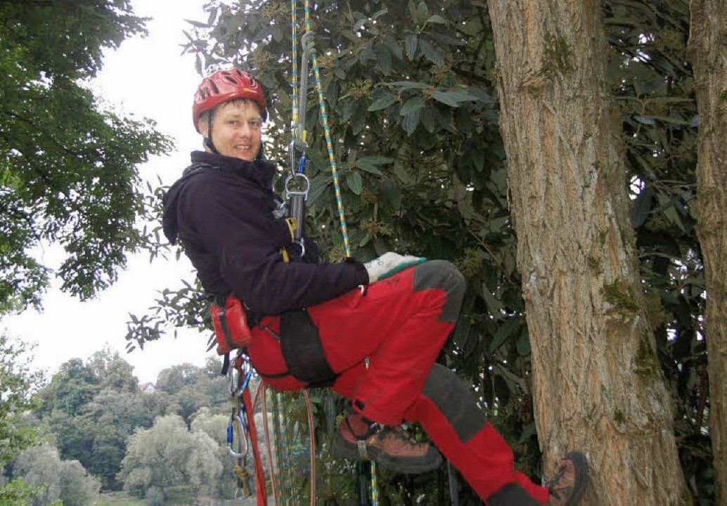 Arbeitsplatz in den Wipfeln: Studentin für Arboristik und Geflüchteter aus Afghanistan helfen bei Baumpflege in Bad Säckingen