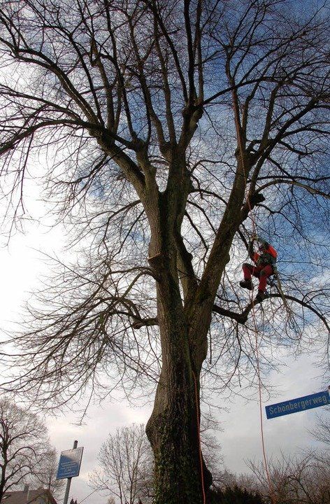 Wenn in Bad Säckingen die Kronen gesichert werden, geht es kaum um königliche Angelegenheiten – auch wenn der Ort des Geschehens ein Schloss beherbergt. Armin Stahr und zwei seiner Mitarbeiter sicherten Ende Dezember auf dem Spielplatz im Schlosspark die Kronen von Birke und Robinie und befreiten diese von Totholz ...